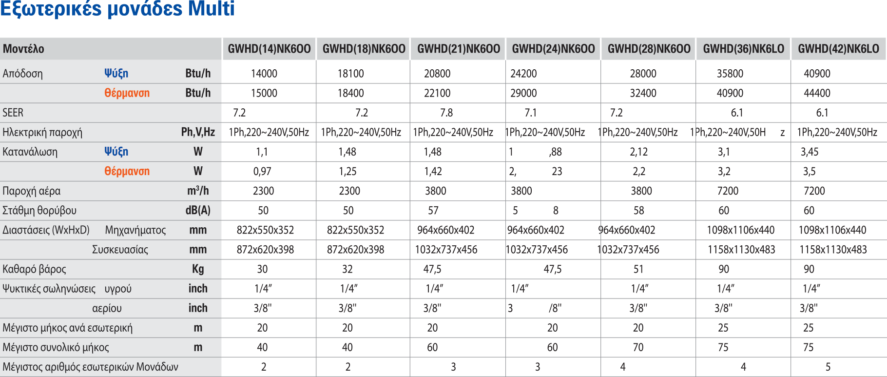 • Μέγιστο πραγματικό μήκος σωληνώσεων 75 μέτρα (42Κ & 36Κ).
