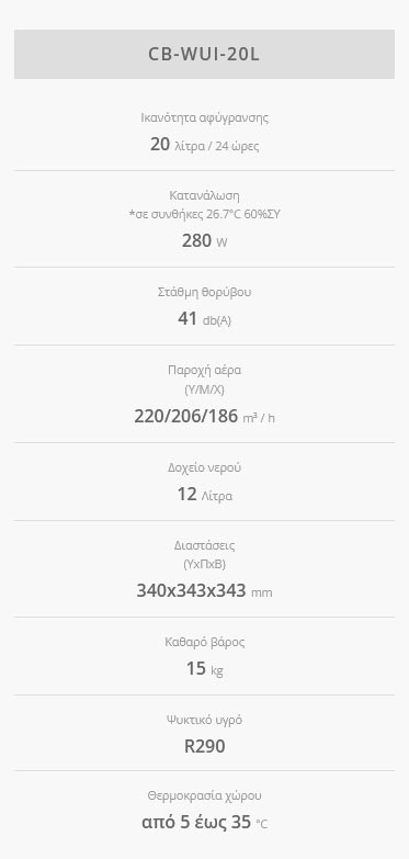 Ο ιδιαίτερος σχεδιασμός του αφυγραντήρα Combo είναι αυτός που τον κάνει να ξεχωρίζει! Χάρη στην ευελιξία που προσφέρει το σύστημα Pick up & turn, σηκώνετε, γυρίζετε και τοποθετείτε τον αφυγραντήρα στην ειδική υποδοχή, απολαμβάνοντας το μεγάλο δοχείο νερού 12 λίτρων αλλά και εξοικονομείτε χώρο τόσο όταν τον αποθηκεύετε μέσα στο δοχείο νερού όσο και κατά τη διάρκεια της συνεχούς αποστράγγισης. Το εντυπωσιακά μεγάλο δοχείο νερού του με 4 επίπεδα γεμίσματος που διαθέτει εξασφαλίζει ακόμη μεγαλύτερη άνεση και προσαρμόζεται απόλυτα στις εκάστοτε ανάγκες σας ενώ η Bucketless Λειτουργία συμβάλλει ακόμη περισσότερο στην άνεσή σας χάρη στη δυνατότητα λειτουργίας του αφυγραντήρα, χωρίς κάδο! Παράλληλα, ο Combo συμβάλλει στην καθαρή ατμόσφαιρα του χώρου σας, απομακρύνοντας τα επιβλαβή σωματίδια, την σκόνη και τα αλλεργιογόνα χάρη στην Τεχνολογία Ultraviolet Τύπου C και τον Ιονιστή που διαθέτει. Με μια ματιά μπορείτε επίσης να ενημερωθείτε για τα ποσοστά υγρασίας στο σπίτι ή το γραφείο σας, μέσω των φωτεινών ενδείξεων και να προσαρμόσετε τη λειτουργία του αφυγραντήρα σας!