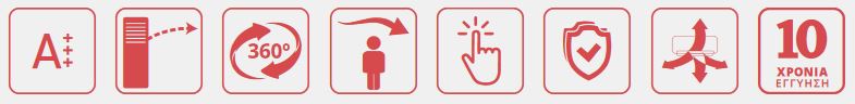 Η ντουλάπα εμφανούς τύπου εξασφαλίζει μέγιστη εξοικονόμηση ενέργειας χάρη στην ενεργειακή κλάση Α+++. Απολαύστε ιδανικές συνθήκες θερμοκρασίας σε κάθε σημείο το χώρου με την λειτουργία Mέγιστης Ροής Αέρα , την έξοδο αέρα 360ο καθώς και την ροή αέρα 4ων κατευθύνσεων, ενώ παράλληλα αποφεύγετε την απευθείας έκθεση του αέρα χάρη στην λειτουργία Avoid Me. Το έξυπνο πάνελ αφής σας εγγυάται την ρύθμιση της μονάδας με βάση την επιθυμητή από εσάς λειτουργία με ευκολία και άνεση, ενώ η αθόρυβη λειτουργία σας επιτρέπει να συνεχίζετε ανενόχλητοι τις δραστηριότητές σας σε συνθήκες απόλυτης ηρεμίας. Η υπεροχή της, είναι άρρηκτα συνδεδεμένη και με τη νέα επίστρωση Χρυσής Προστασίας , που θωρακίζει την μονάδα και διατηρεί την απόδοση του κλιματιστικού στα ύψη, επιτρέποντάς σας να απολαμβάνετε όλα τα οφέλη για ακόμη μεγαλύτερο χρονικό διάστημα.